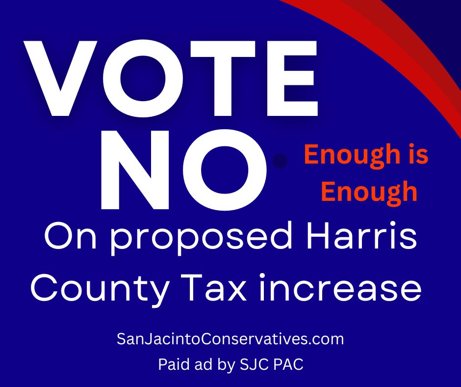 The Harris County doesn’t have a revenue problem it has a spending problem. Last year we had record tax increases. Tell Harris County Commissioners Court Enough is Enough, Just Vote
